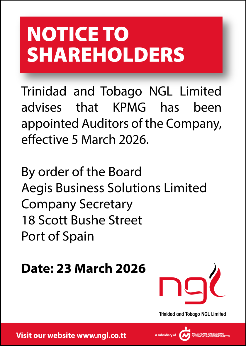 Trinidad and Tobago NGL Limited advises that KPMG has been appointed Auditors of the Company, effective 5 March 2026.